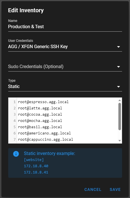 For the API server, provide "https://espresso.agg.local:9443"